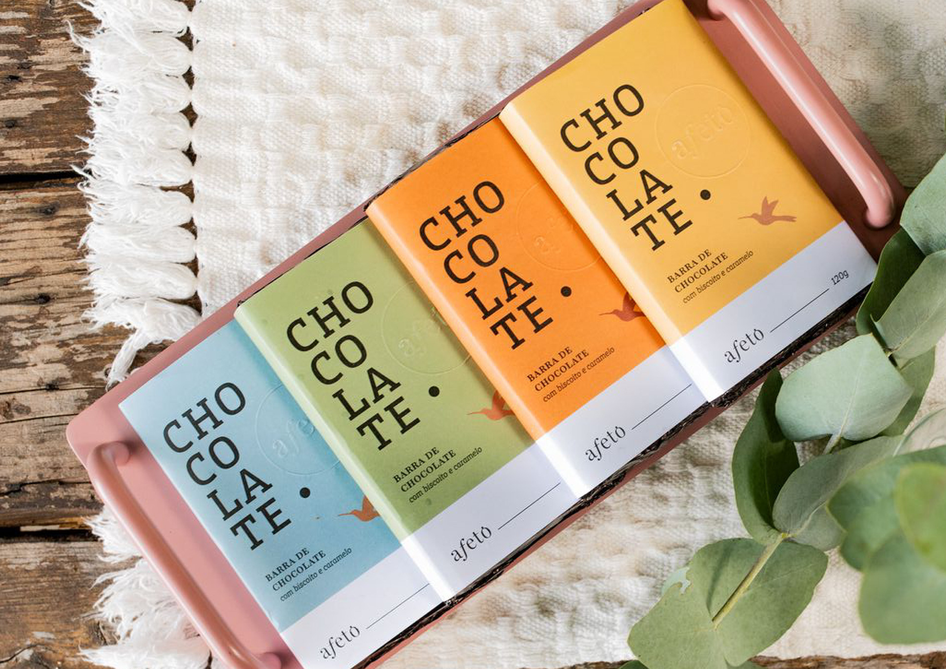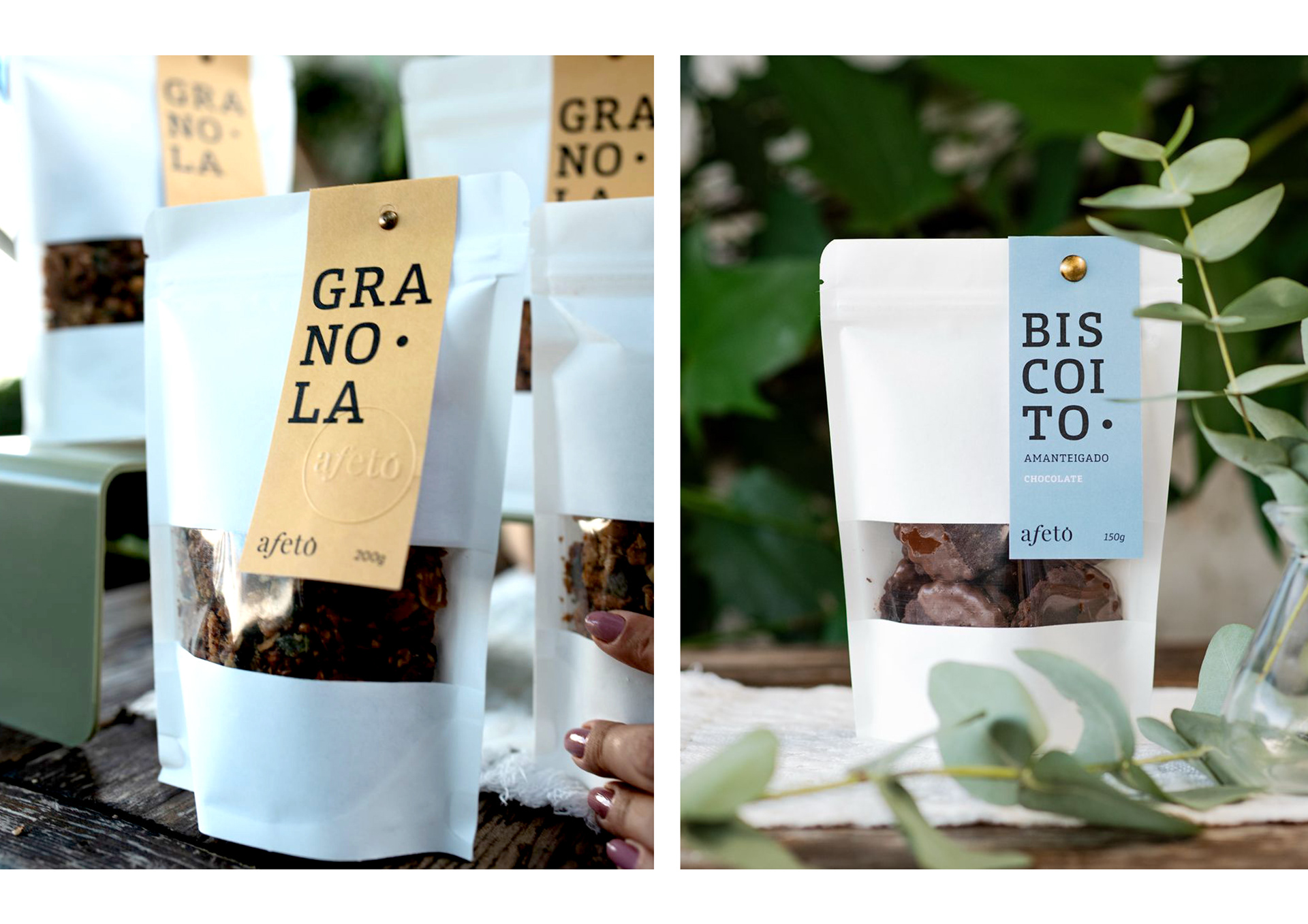 Revitalização da Identidade Visual da Confeitaria Afeto. Desenvolvimento de embalagens para os itens das cestas de café da manhã e produtos presenteáveis.