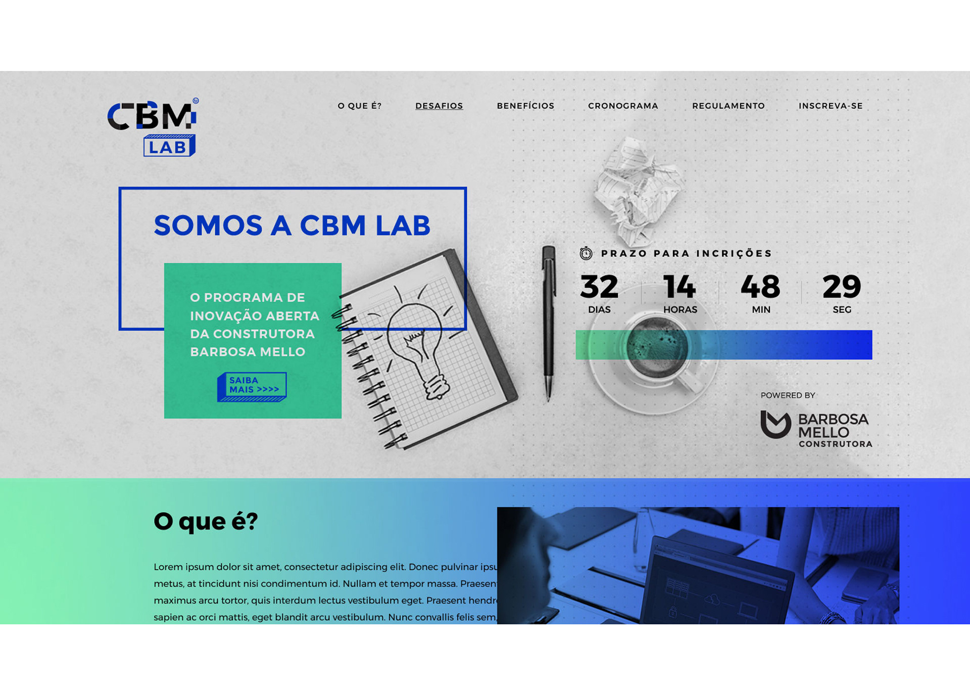 Identidade Visual desenvolvida para um programada de aceleração de startups da Construtora Barbosa Melo.